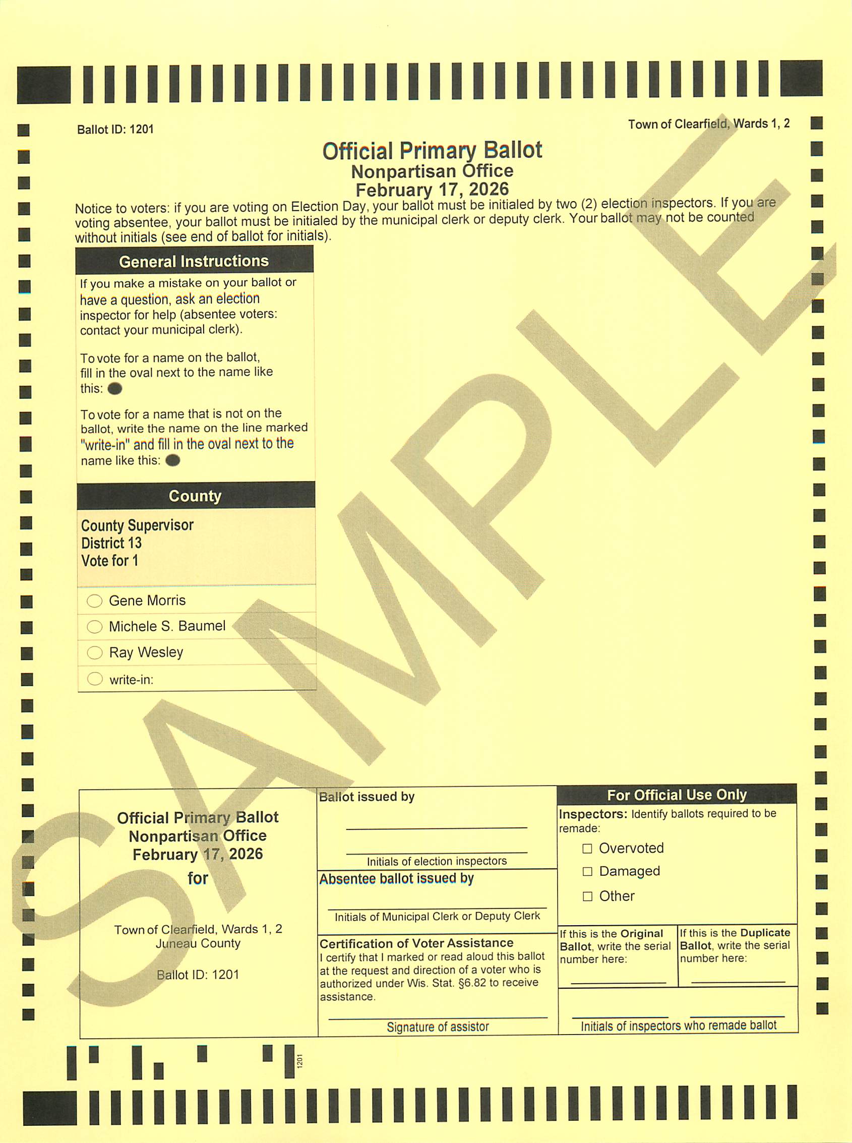 Sample of Official Primary Ballot Nonpartisan Office, February 17, 2026